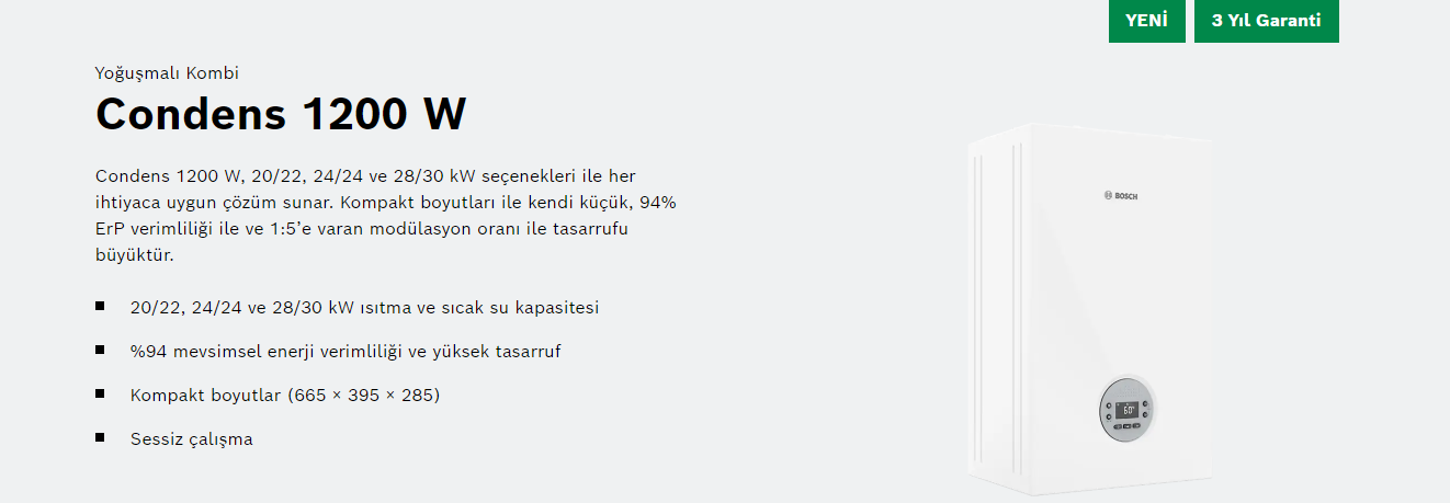 Yoğuşmalı kombide devrim niteliğinde teknolojik üstünlük yaratan Bosch Home Comfort, 1895’den bugüne edindiği tecrübeler ile yüksek kalite standartlarına sahip Bosch yoğuşmalı kombileri ile daha çok doğalgaz tasarrufu ve sıcak su sağlıyor.
